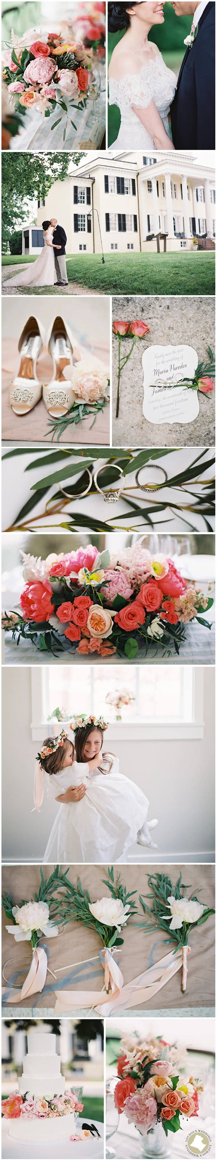 Fresh, lacy and lovely in every way, this Oatlands event was lovingly crafted around a palette of corals, blushes, peaches and creams. The magic of this occasion was truly in the details, from the bride's lace-edged gown to the single, voluptuous floral band around a bottom layer of the couple's chic wedding cake. Willowy greens enlivened the aesthetic, enhancing a sense of elegance freshly swept from the garden. Photos by Anne Robert.