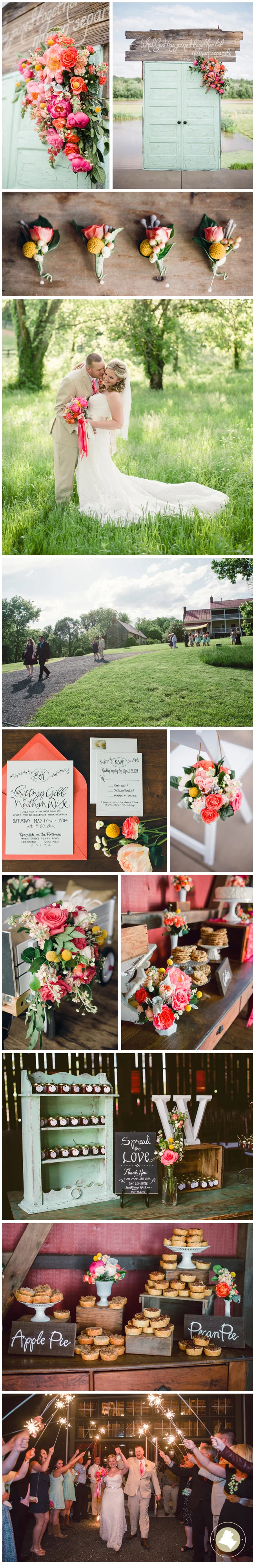 Vibrant, fresh and intimate, this Riverside On The Potomac affair was bursting with color. Vintage touches like glass cake plates, simple bud vases and calligraphed wooden signs gave the whole event a heartwarming sense of family. With lovely details from the rustic ceremony decor featuring distressed wooden doors bedecked with floral accents to cozy reception environs created through the use of provincial furniture details, gorgeously styled. The picture of homespun elegance. Images Photography Du Jour.